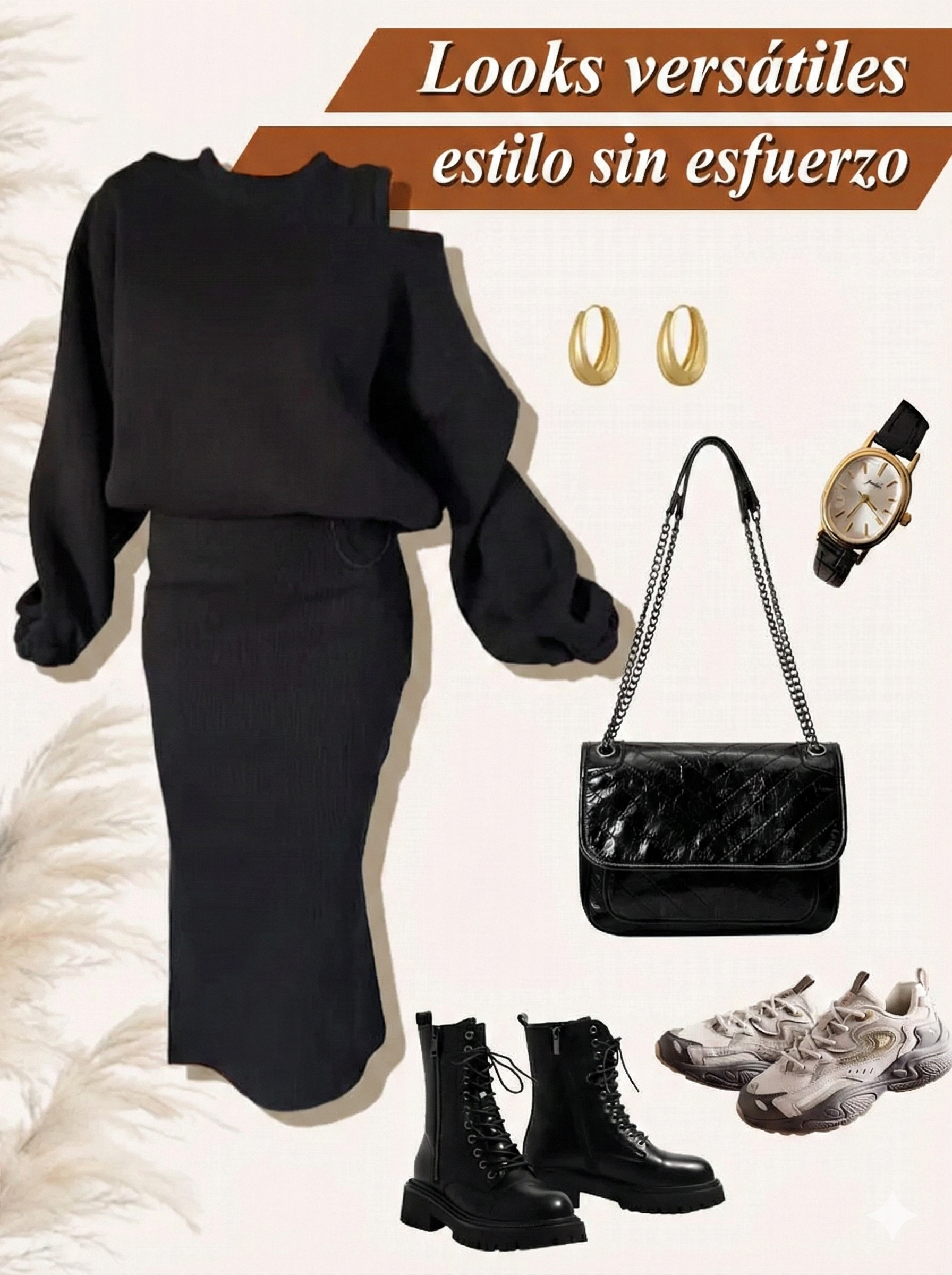 Conjunto: sudadera con hombros caídos y vestido sin mangas